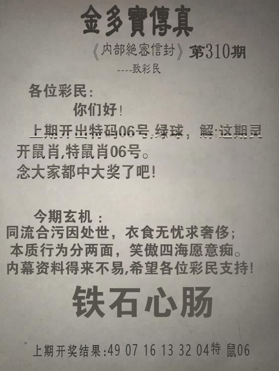 | 310期五肖 | 虎猴兔蛇鸡 | 开:?00中 | ||||||||||||||||